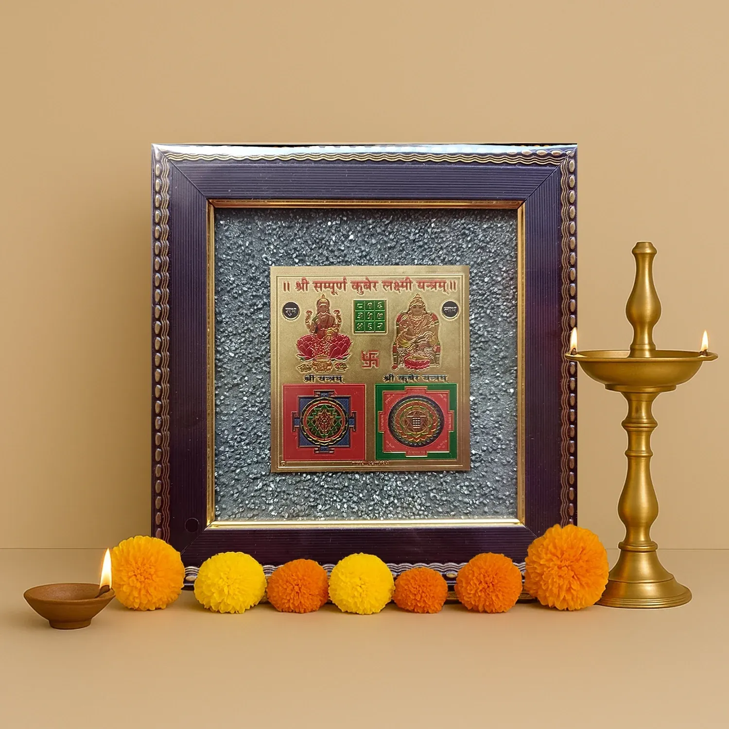 Blessed by the combined energies of Goddess Lakshmi (Goddess of Wealth) and Lord Kuber (Guardian of Fortune), this Yantra frame is an auspicious addition to your home, office, or business, ensuring financial blessings and continuous growth.
